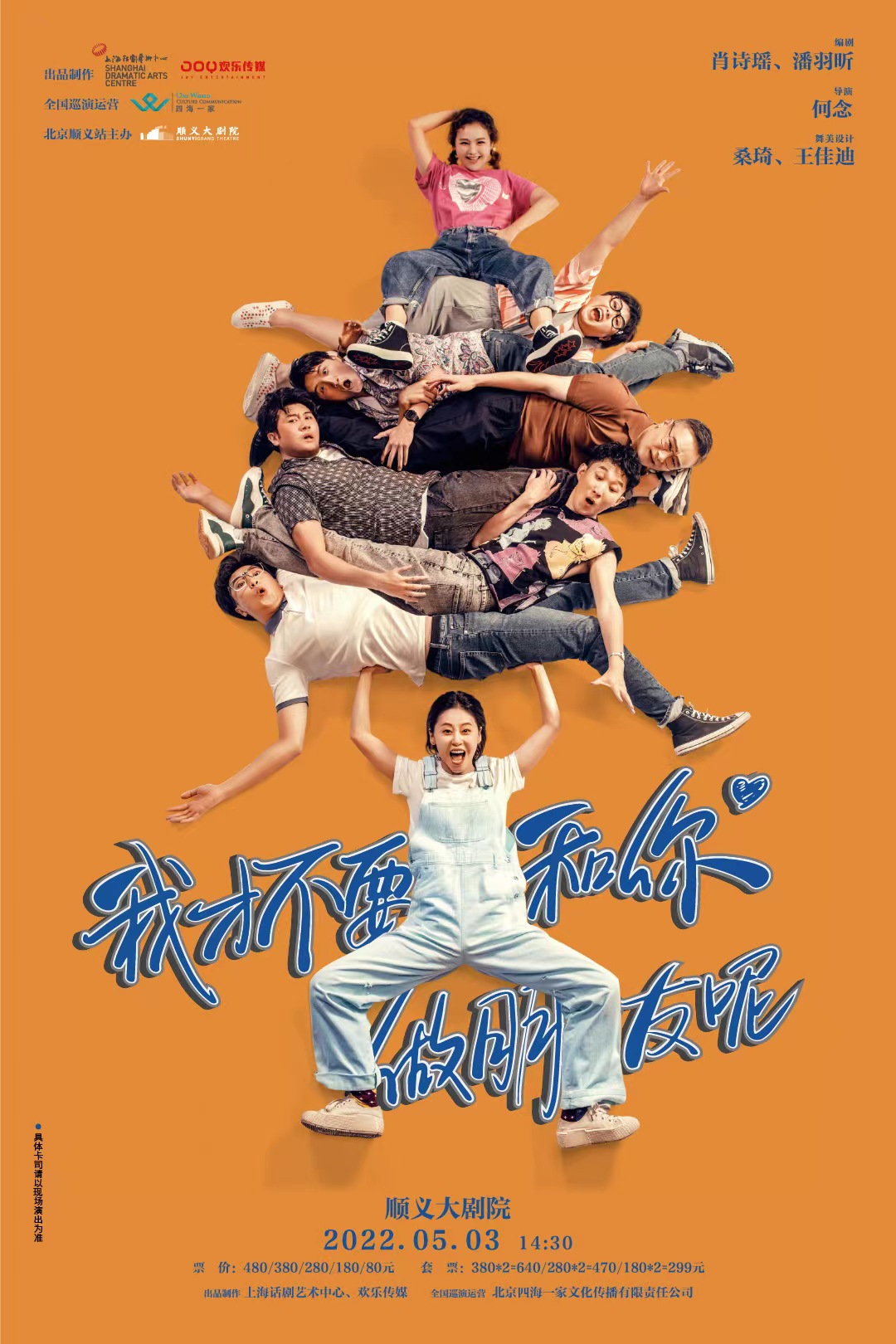 出品制作:上海话剧艺术中心、欢乐传媒、念聚场(上海)影业有限公司 | 出品人:张惠庆、董朝晖 | 总监制:田水 | 艺术总监:喻荣军 | 策划:钱芳 | 制作人:刘雷、汤泳 | 编剧:肖诗瑶、潘羽昕 | 导演:何念 | 舞美设计:桑琦、王佳迪 | 形体指导:刘旻姿 | 灯光设计:刘海渊 | 灯光设计助理:朱雨双 | 服化设计:赵欣、刘善通 | 服化设计助理:毕文宗 | 音效设计:王轶轩 | 道具设计:刘一平 | 技术设计:周宏军 | 舞美制作监理:赵明 | 设备保障:吴雷、马骏 | 舞美经理:孙俏懿 | 演员经理:俞晓、宋雨吉 | 宣传经理:张芊 | 营销经理:朱江、杨军、薛伟 | 艺教活动经理:杨丽娟、陈成心育、刘娴琳